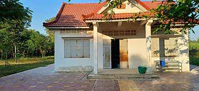 The shop is still used to make school uniforms for scholarship students and krama weaving.